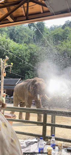 Finally, the elephants are made to perform in a circus style with very loud loudspeakers blaring and a gawping crowd of hundreds. If you know about the concept of "crushing" elephants, then the only way these "rescued" elephants would be doing this behaviour is through crushing. They were made to spray water at tourists, and rear on their hind legs, and many other tricks, while the staff member spoke about elephants' "care".