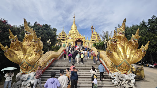 Read moreDie Menghuan Shwedagon Pagode befindet sich auf dem Gipfel des Leiyarang Berges im Südosten von Mangshi, der Hauptstadt der Präfektur Dehong in der Provinz Yunnan. Die Menghuan Shwedagon Pagode, ist nicht in Myanmar, sie ist in China in mitten der grünen Berge und des grünen Wassers erstrahlt in goldenem Licht, blendend, majestätisch und noch heiliger. Es ist ein Wahrzeichen von Mangshi und ein heiliger Ort für das hier lebende Dai Volk. Die Menghuan Shwedagon Pagode ist die größte goldene Pagode Chinas und die größte Hohlpagode Asiens. Sie liegt am Gipfel des Leiyarang Berges im Südosten der Stadt Luxi, Autonome Präfektur Dehong Dai und Jingpo, Provinz Yunnan in China. Sie ist immer geöffnet von 08:30 bis 21:00 Uhr. Wenn man vor ihr steht, sie ist beeindruckend...