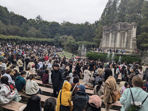 It depends on which day you go , it's crowded by people especially local tourist not much foreigner . Sometimes there is forest orchestra performing there which is cool . Walking up there is quite a distance and it needs to make an appointment in wechat mini program to get qr and enter the compound , after entering you can proceed to few site which is sut-yat-sen mausoleum , yinyuetai etc . Well i'm not a pigeon lover but people would buy food and feed pigeons , last time i witnessed a couple proposing there haha . Tourist attraction place , a lot of walking not suitable...
