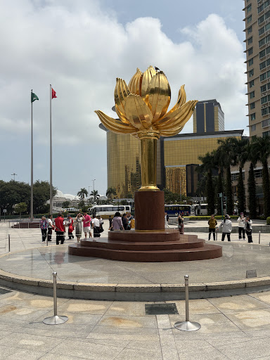 Read moreThe golden lotus sculpture, standing 6 meters tall, symbolizes purity, enlightenment, and prosperity. Its design captures the essence of Macau’s cultural heritage. You Can visit at 8:00 AM to witness the flag-raising ceremony—a patriotic moment celebrating both Chinese and Macau flags. The base features three granite lotus leaves, representing Macau’s main islands.