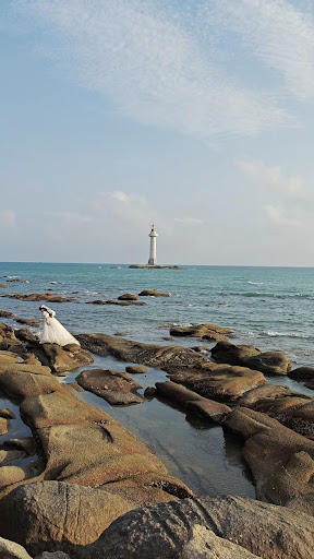 The place and scenery was quite good at sunset, but nothing much to see other than the beach. They have a popular faux Balinese gate that became a photo spot for locals. Otherwise not much to see here. The wind can be quite strong on top of one of these boulders on the beach. The lighthouse seems to be quite an iconic photo...