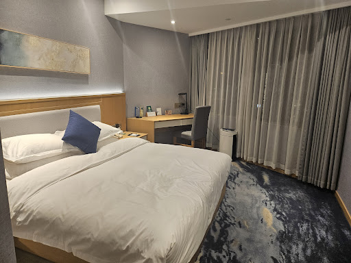 Gut gelegenes, solides Hotel. Preis-Leistung absolut in Ordnung. Vom Flughafen Pudong braucht man mit dem Taxi je nach Verkehrslage schon 45/60 min. Aber für mich immer noch die comfortabelste Lösung, auch in Shanghai selbst, da preislich in Ordnung. Der Empfang war freundlich und bemüht und auch englisch wurde angewandt. Das Personal war ohne Ausnahme sehr zugewandt, hilfsbereit und nett. Die Zimmer groß, geräumig und sauber. Ja an einigen Stellen könnte nachgebessert werden und vielleicht nochmal drübergewischt werden bzw renoviert werden. Dafür waren die Betten total bequem, penibel sauber und das Reinigungspersonal nett und aufmerksam. Manchmal war es etwas lauter gerade die zufallenden Nebenzimmertüren oder irgendwo wurde gehämmert. Aber es wurde immer gerade auch bei den Fensterreinigern angekündigt. Klima funktioniert und ist leise. Im Zimmer selbst, mini Kühlschrank, Wasserkocher, genug Steckdosen, auch für EU Anschlüsse, TV, Fön und Shampoo, Duschgel,Conditioner. Pool: erscheint auf den Internetbildern grösser und spektakulärer, ist durch den zweiten Aufzug unten im Foyer im 6ten Stock zu finden. Die Lage fanden wir am Besten. In einem schönen, belebten, unserer Meinung nach sicherem Viertel. Alles was man braucht in unmittelbarer Nähe, viele 24/7 Shops, Restaurants, Bars, kleine Boutiquen, Parks. Die Metro ist ein Stück entfernt, wir nutzten lieber Taxi Service, da günstig oder sind zu Fuss los. Wir werden auf jedem Fall wieder kommen und auch in dieses Hotel.