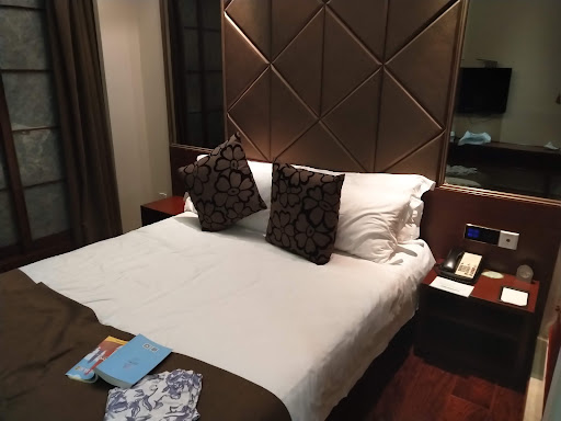 Read moreThe entrance to this hotel is beautiful. The hall is lined with antique jade which will take a little while to examine as the carvings are exquisite. You are greeted with a friendly smile and efficiency checked in. The lifts are almost art deco in style and polished to a high finish. My room was wonderful. It had plenty of space for everything the weried traveller needs. Two large chairs in a small vienete, Two double beds, writing desk, and bar/eating area. There is tea and coffee. And if you need anything the staff will be more than happy to get if for you. There have been comments in previous reports about the wifi. Yes it is slow and stop. But there is much more to Shanghai than internet service. Outside of the room there are two large seating areas that also have a fish pond to add to the tranquility of your stay. Its great for meeting fellow business travelers our just to sit whilst contemplating the...