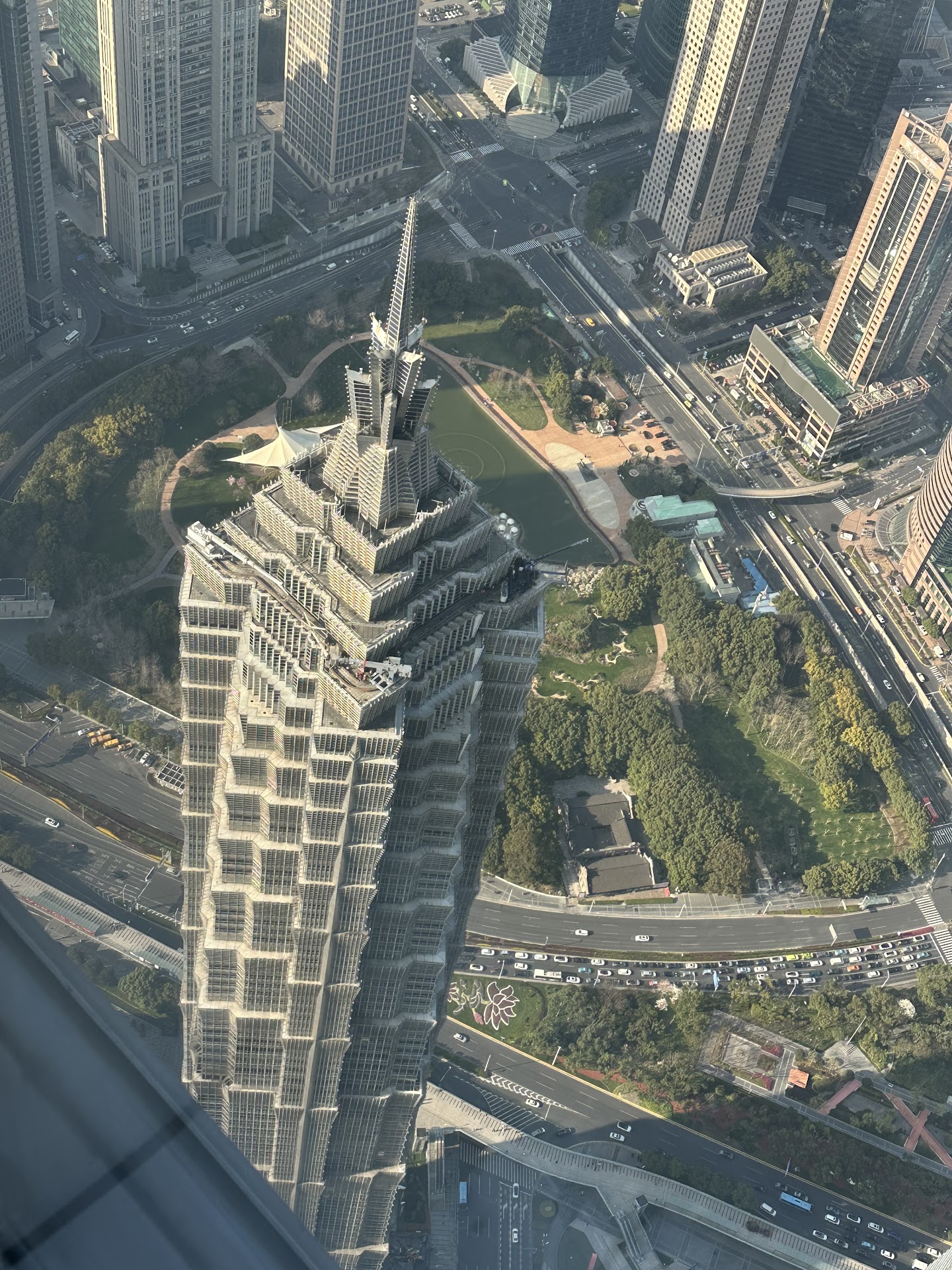 The Shanghai World Financial Center (SWFC; Chinese: 上海环球金融中心) is a supertallskyscraper located in the Pudong district of Shanghai, China. It was designed by Kohn Pedersen Fox and developed by the Mori Building Company, with Leslie E. Robertson Associates as its structural engineer and China State Construction Engineering Corpand Shanghai Construction (Group) General Co. as its main contractor. It is a mixed-use skyscraper, consisting of offices, hotels, conference rooms, observation decks, and ground-floor shopping malls. Park Hyatt Shanghai is the tower's hotel component, comprising 174 rooms and suites occupying the 79th to the 93rd floors, which at the time of completion was the highest hotel in the world. It is now the third-highest hotel in the world after the Ritz-Carlton, Hong Kong, which occupies floors 102 to 118 of the International Commerce Centre.5]