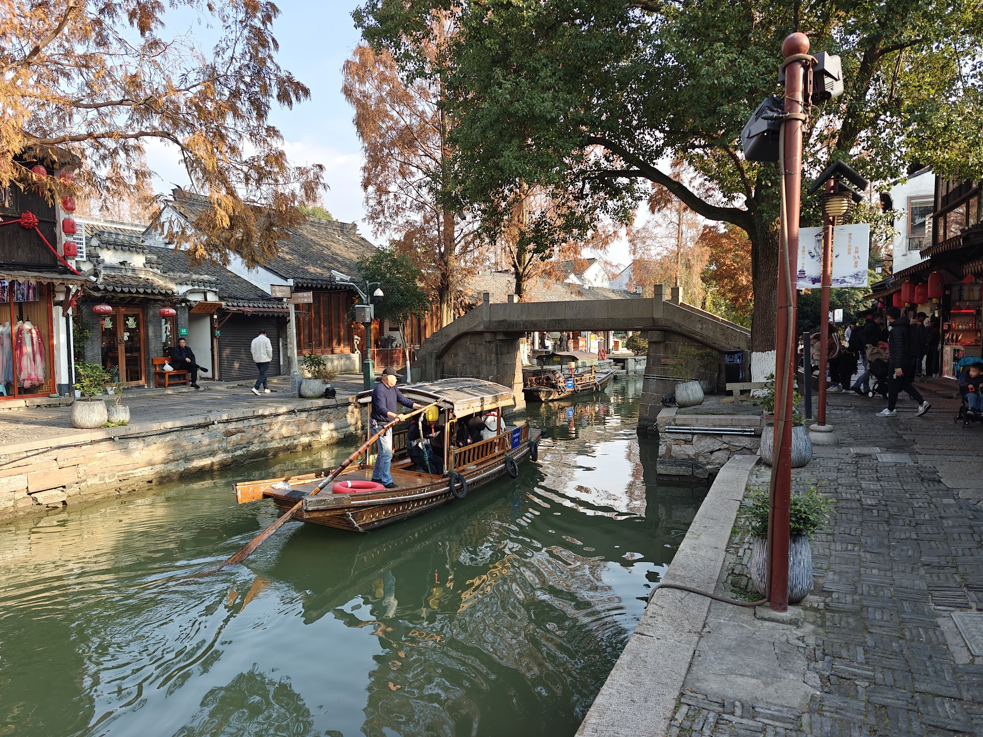 Getting to zhujiajiao from shanghai city was relatively simple, albeit a significantly long journey. We too the mtro line 2 from nanjing road to hongqiao airport station, then switched to line 17 to zhujiajiao station. Metro fare was ¥8 one way for an adult. Be reminded that bags need to go through scanning for metros, so leave sharp objects at home. Going into the town, there is the option to hail a ride, rent a bike, or buy a boat ticket. The little boat is 20 min long, ¥40 per person and will take you directly to the middle of the water town, so while pricey, i thought it was worth it.