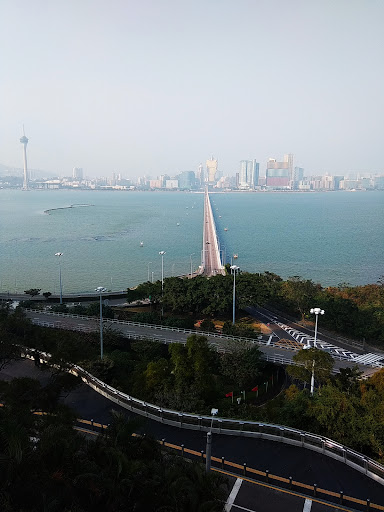 The sculpture's tail-like form is said to depict the tail of the dragon running down the hill accross the bay (the bridge being its body) and landing in front of the Lisboa Hotel, blessing it with its good energies...