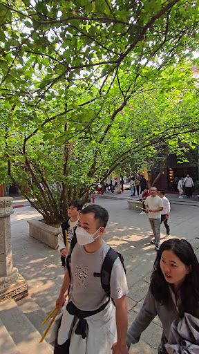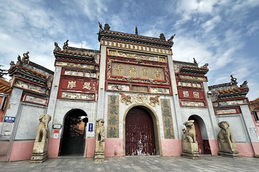 Before you enter and purchase tickets, they will additionally offer you a packet of three joss sticks to worship with. When you enter, there is a large Guanyin statue where people gather to pray for blessings and good luck. There are several old buildings inside, with a solemn and quiet environment that will leave you feeling peaceful and calm. The lotus pond inside the temple is full of pigeons and turtles, and there are small monk statues down the aisle.