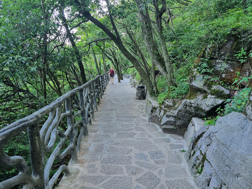 Tianmen Mountain is a spiritual place steeped in legends and customs. It's unclear if the mountain itself pertains to any particular religion but there is a beautiful Buddhist temple at the top. You can take a cable car half way up the mountain which will deposit you close to the bottom of a huge, steep staircase leading to a huge natural stone arch called Heaven's Gate. Don't worry, there's also a lift. After the gate there's a series of long escalators to the top of the mountain. The mountain is topped by dense jungle and the perimeter is a sheer cliff all the way round. There are walkways fixed to the cliff face, some made of glass which is scary. A brisk walk round the perimeter will take about an hour but you should allow two because you will be enticed into the jungle by enchanting passages leading to beautiful places. There's a serene ski lift taking you from the back of the mountain to the centre which I strongly advise you to take a ride on. At the front of the mountain you can take a cable car all the way to Zhangjiaje town. You should allow four hours to experience the whole place. In June 2025 it cost about 500 yuan to visit. Last entry is 4pm. Regardless of which entrance you choose YOU WILL ALWAYS NEED TO START YOU TOUR AT THE CABLE CAR STATION IN ZHANGJIAJIE TOWN and a bus will take you to the other entrance if that's where you're going. Tianmen Mountain is not included in the Zhangjiajie National Forrest...