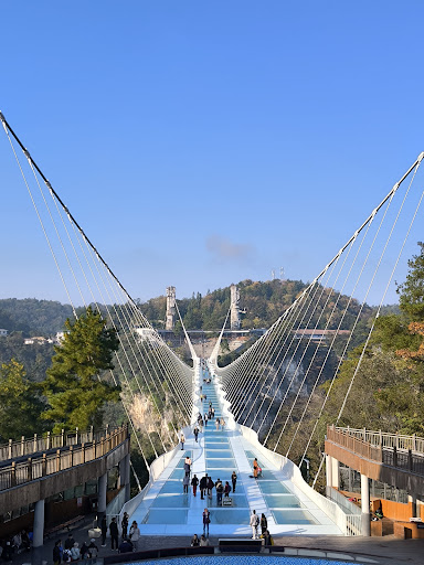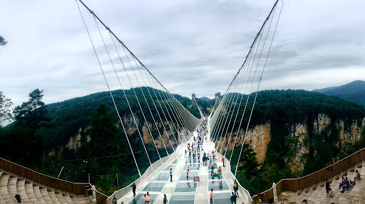 Read moreThe glass bridge maybe the postcard of this attraction, but the gorge and canyon itself is breathtaking. A blending of man made outdoor activities with stunning natural gorge surrounding, make it even more exciting to visit. The park layout design is interesting, visitors enter at the highest point of the canyon, then hiking or a combination of hiking and joining rides on a one way path towards the park exit. For those seeking adrenaline rush, bungee jumping, zip lining over a deep and vast canyon and sliding are fun activities and act as means of transportation (taking you to next location on the one way route). For those who prefer a less heart beating activity, can choose to pay for a fast elevator down or to hike several hundred meters down an almost vertical trail. Once you are at the bottom of the canyon, there is a wonderful 3 kilometers trail zipping along the stream that leads you to the boat pier. There is an outdoor cafe, partially under rock wall by where you can have coffee and relax. There is a small "bandit" cave with colorful lighting on the trail. The final section is a 10 minute boat cruise on the serene lake. The park is some 30 minutes away from Wulingyan Zhangjiajie national park. It's worth adding half a day or another full day in...