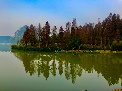 肇庆星湖北门红杉树公园,美丽的风景倒映,一览无余的落羽杉一遍红色实为壮观。17/01/20...
