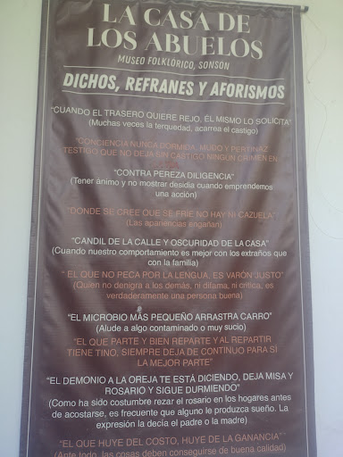 Una incomparable exhibición de objetos en varias escenas de una casa tradicional antioqueña (el costurero, la alcoba, el oratorio, el escritorio, la cocina, baúles y valijas, vajillas, cunas, ropa). También muestra las imprentas que produjeron más de 150 periódicos de Sonsón; las cajitas de ahorros, símbolos de los prósperos bancos en el museo bancario; el archivo fotográfico de Emilio Pérez López; el museo arqueológico de Armados y Pantagoras. En fin, el museo de los abuelos enseña parte de la historia de Sonsón y apreciar el desarrollo de los...
