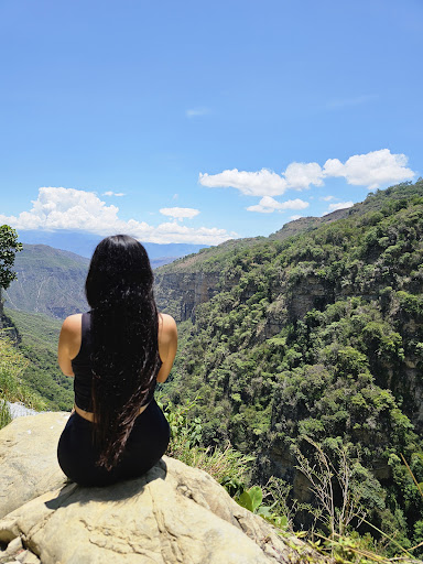 Un destino bellísimo para disfrutar de la mejor vista del cañón, el agua de los pozos y un sabroso masaje con la pequeña cascada que se encuentra al fondo, que por cierto permite subir a conocer otro pequeño pozo que se encuentra arriba con otra bonita caída de agua. Para llegar puedes guiarte por la ruta de maps e ingresar a la finca que tiene el letrero Manchego, ahí se pueden estacionar las motos pagando 2000 pesos y te guardan los cascos, además de que venden a muy buen precio mecato y bebidas. Una vez allí, te indican por dónde tomar el camino a la cascada y la caminata es de unos 15 o 20 minutos con baja dificultad. Algunos guías prestan el servicio de acompañamiento hasta la caída de la cascada, pero es bastante arriesgado y difícil llegar, por eso las personas visitan la parte alta y disfrutan de la vista, puesto que se trata de una altura aproximada...