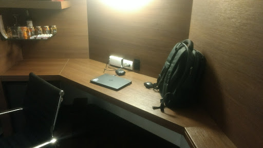 Much of the furniture was chipped or worn down. The Nespresso machine had no-name capsules provided (instead of Nespresso capsules). There is a mini bar fridge with drinks: therefore, space to put your own water or food in the fridge. You get one free small bottle of Hatsu water per day, and tea bags vary. There is a small closet with about six wood hangers and a couple of small drawers and a safe. The queen size bed was basic but not uncomfortable.