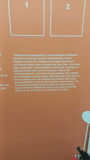 Read moreIt's an interesting little museum that covers the colonial past from a European and perhaps Catholic church perspective. Issues of slavery and abuse of indigenous and Africans touched on very lightly. Meanwhile, the advantages accrued by European dominion are played up. For example, Mestizos being allowed to study in church established colleges or Africans and Mestizos being taught trades are shown as benefits of colonization. Go to the National Museum of Colombia for a more academic and socially aware perspective though with much fewer English language translations. Pics are of the single display of precolonial art with a Eurocentric perspective of what constitutes advanced society and another highlighting the benefits of...