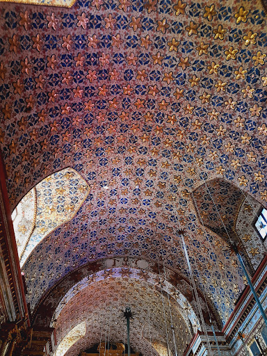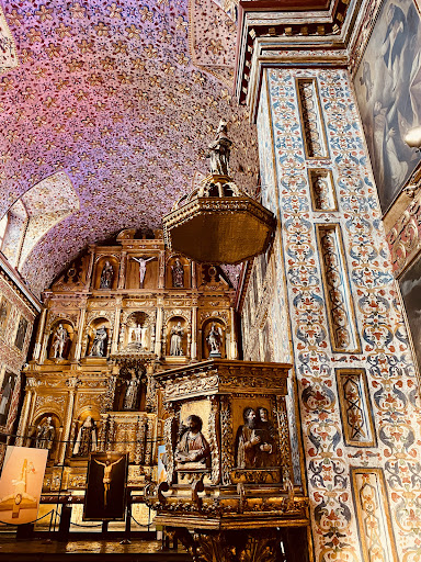 From the moment you step inside, you're greeted by walls adorned with an astonishing array of over 148 paintings and sculptures. The intricate gold leaf altarpieces and the ornate, hand-carved wooden ceiling are truly breathtaking. Every inch of the interior is covered with rich artwork, making it one of the most decorated churches I've ever seen.