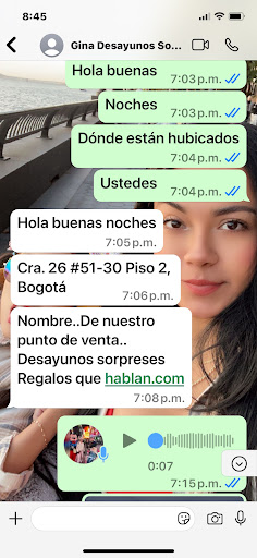 Read moreRealice la compra de dos desayunos sorpresa el dia 8 de julio del 2016 a las 7:50pm la aprobacion del pago fue a las 7:56. Solicite el pedido para el dia 9 de julio para el horario entre las 7 y 8m. Y al llamar al lugar desde las 8:30am porque el pedido no ha llegado no contesta el telefono sino hasta las 9am y la respuesta fue que como la compra se hizo fuera del horario, los pedidos salen despues de las 9am. Y en ningun lado de la pagina web sale esa informacion, en cambio la informacion de la pagina dice que se puede comprar las 24 horas al dia de lunes a domingo. Por lo que me parece una falta de respeto con el cliente y la atencion es malisima. No hubo sorpresa. Voy a escribirle a la industria y comercio porque estos tipos de negocios engañan a la gente dando una informacion que no corresponde con el verdadero servicio que ofrecen. Son las 9:34am y los...
