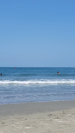Ahora bien, respecto a la playa, recomiendo a quedarse en ésta playa hasta la punta de Bocagrande. El agua no transparente, las olas normales y agradables, así mismo a bañarse, también con niños en caso de familias. No hay obligación a comprar zona con sillas y parasol, llegar con la propia toalla y acostarse sé puede también. A los vendedores ambulantes hay que responder una sola vez "No, gracias" y si siguen insistiendo, entonces hay que ignorarlos y dejarlos ladrar como un perro hasta que se va. Cuidado con las masajistas, es triste que mujeres se comportan muy lejos de ser una Dama, rechazarlas todas y ya.