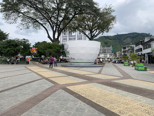 Plaza principal del Municipio más Caficultor de Colombia Chinchiná caldas Tierra cafetera por excelencia, monumento a la remembranza de uno de sus más grandes atractivos culturales que es la taza de un Buen café de nuestras montañas cafeteras, una tierra con gran calidad humana, cultura antigua cafetera hermosas haciendas Rurales cafeteras que cuentan sobre el paisaje cultural cafetero y la historia del grano de café en Colombia y caldas, un clima templado para tener un viaje en familia así mismo a tan solo 15 minutos encuentra el municipio de Santa Rosa de cabal famoso por sus deliciosos y exclusivos chorizos Santa Rosanos, en una excelente destino turístico además se puede tener la posibilidad en la Fábrica de café liofilizado al ingreso del municipio de Chinchiná de comprar todos los productos elaborados del cefe y su producto líder poder excelcia el CAFE LIOFILIZADO de calidad...