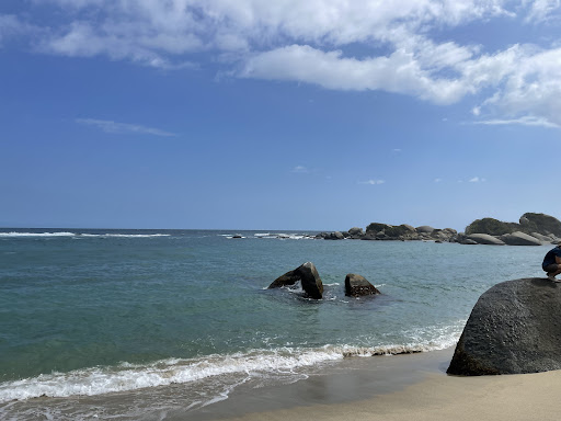 Se encuentran en el Parque Nacional Tayrona. Es un lugar Paradisíaco. Al cual se puede acceder con niños; me animaría a decir mayores de 5 años si se desea acceder caminando, nosotros fuimos con tres de 11,9 y 6 años y lo hicieron muy bien en hora y media de ida y hora y media de vuelta, haciendo paradas para hidratarse, tomar helados, comprar bananas y reponer el bloqueador solar. Hay que ser muy precavidos en cuanto a calzado ( zapatillas), gorras, hidratación y protector solar. Este último debe ser alto, tanto para chicos como para grandes. Es una experiencia maravillosa en la que se atraviesa Sierra y selva para llegar al mar, un mar absolutamente tranquilo. El camino es duro porque la humedad es muy alta y hace mucho calor pero no dejen de hacerlo, tiene su recompensa. Durante el trayecto, pueden encontrarse vendedores de agua y de helados de agua. También hay descendientes de Tayronas vendiendo cocos ( muy hidratante su agua) y bananas. También se puede ir a caballo desde la entrada hasta diferentes playas costo de los caballos hasta playa La Piscina es de 20 dólares por persona. La entrada al parque para extranjeros unos 30 dólares; en la que se incluye un seguro. Aclaro que fuimos en Agosto y no hizo falta repelente. En otras épocas no lo sé. También se puede acceder en lancha, pero no sé los costos. Los vendedores del lugar son absolutamente amables con el turista. Al igual que la mayoría de los Samarios. Agradezco haber podido conocer esta maravilla de la naturaleza. No dejen de...