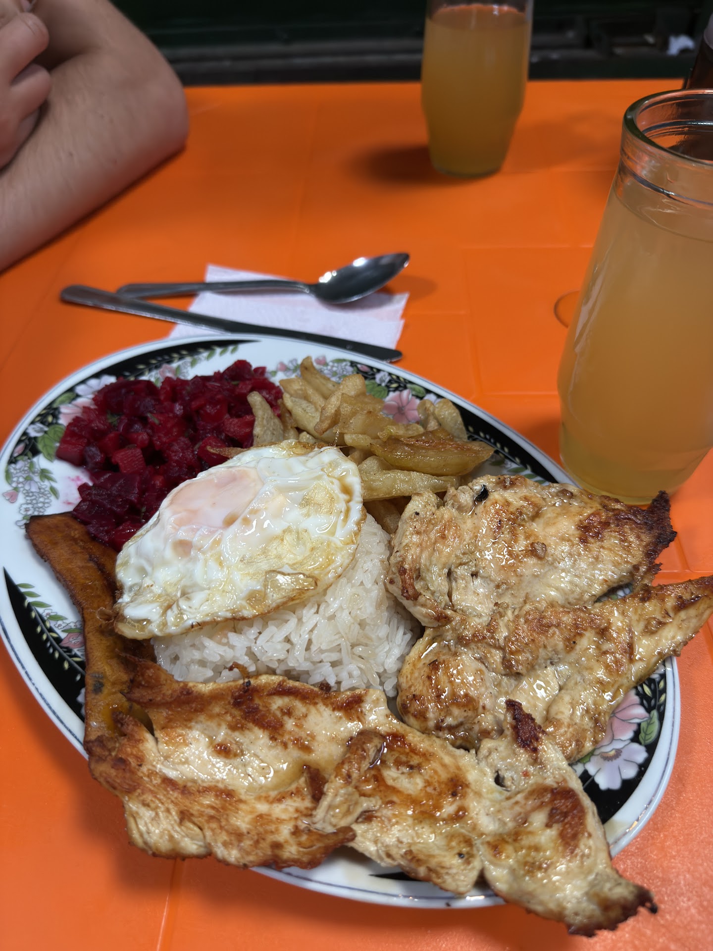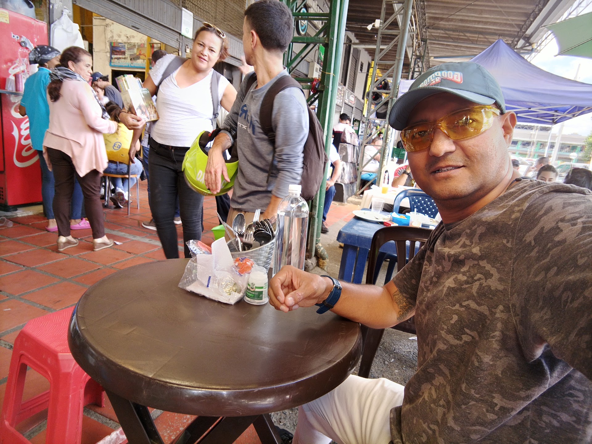 El caso fue que me senté ( además llevaba un hambre tenaz) . Me senté en esa mesa de plástico ( polímero , Rimax ) cómo lo quieran llamar ...
