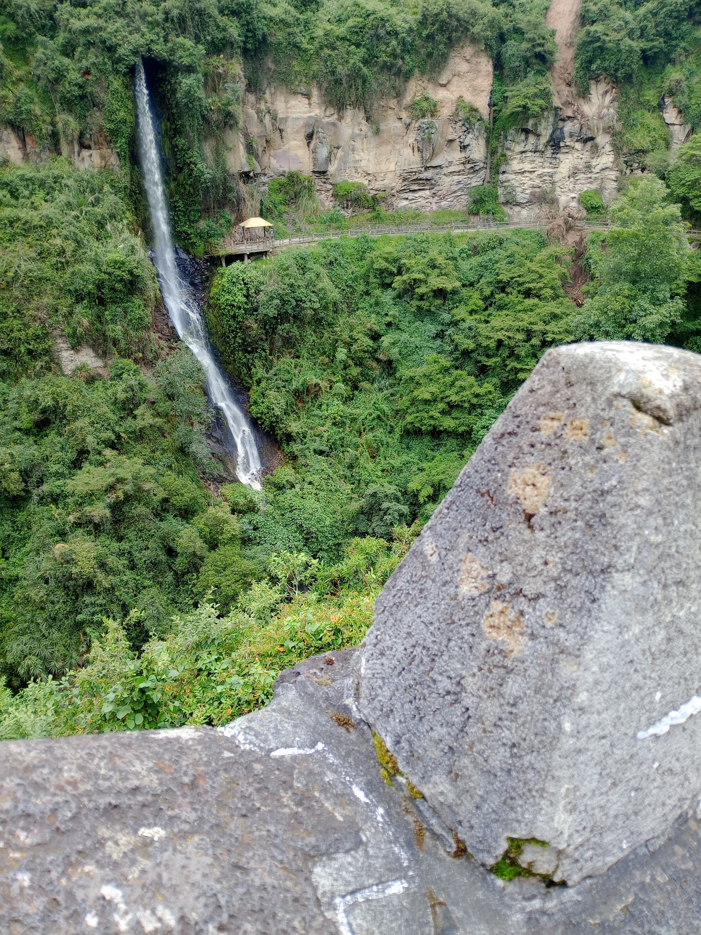 Muy linda cascada frente al santuario de las lajas, para llegar aqui debes caminar desde la plazoleta del santuario hasta la xona de comidas, luego desde alli se encuentra el camino hacia la cascada, es de una gran altura y con caida al rio guaitara, desde el mirador puedes tocar el agua y disfrutar del sonido del agua, la puedes observar tambien mientras estas bajando hacia el santuario, un lugar lindo para...