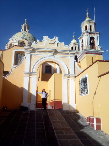 La iglesia es hermosa y grande, echa de oro por dentro pero para llegar a ella tienes que caminar y subir escaleras ya que la iglesia se encuentra en una montañita, es un poco pesada la subida por lo que recomiendo disfrutar de la caminata, llevar agua, gorra, lentes, camara o celular para tomar fotos ya que tiene una linda vista a la ciudad y en la iglesia existen miradores dónde te puedes tomar fotos, no hay cobros por fotos. Dentro de la iglesia se pueden encontrar la fachada hecha de oro, muchas imágenes, figuras, pinturas, algo bello si te gusta la historia y el arte. Es un lugar turístico muy importante para la ciudad, me gustó conocerla. Para conocerla recomiendo que llegues temprano ya que cierran a las 3 pm. Cuando llegas a la iglesia, puedes caminar por fuera y alrededor de ella, es ahí donde se encuentran los miradores y en algunos lugares se puede ver claramente los volcanes Popocatépetl y Iztaccihuatl. Para bajar de la iglesia hacia la ciudad debes seguir un sendero que te llevará a una pequeña planicie con cesped ideal para ver el paisaje.