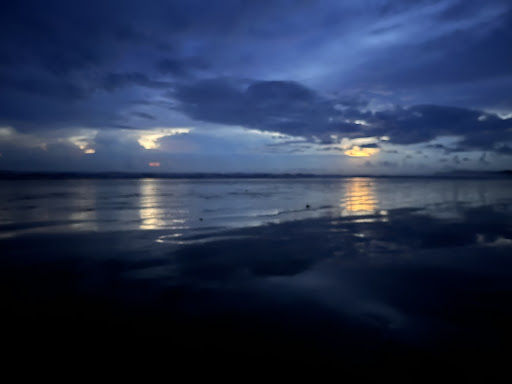 The sandy beach is full of marine diversity. We found myriads of crabs and mollusks running around. The crabs are bright red, small and rather shy, darting into their sand holes as soon as they feel human presence. The beach is also full of shells of bright and unusual colors like pink, purple, shades of yellow and bright orange, the kinds I have not seen elsewhere. We also found a lot of sand dollars (skeletons of burrowing sea urchins), milk white to deep grey in shade. Interestingly (and pleasantly), there are hardly any sea weeds anywhere, leading the beach to look a lot prettier than the ones that are strewn with weeds. We came across a couple of streams along the way, flowing cool and crystal clear water to the sea.