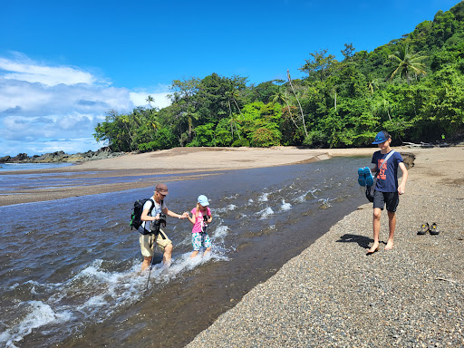 Read moreEl camino de Bahia Drake a Rincon de San Josecito es una pista de tierra y pero hay que atravesar dos cursos de agua sin puente. Por suerte el dia antes consulte con un guía si se podian atravesar en coche. Me dijo que dos días antes no se podia pero que en ese momento ya se podian atravesar. Efectivamente pudimos hacerlo aunque con bastante miedo al ver como el agua era desplazada por el avance de nuestro Mitsubishi ASX 4x4 y parecia que ibamos en lancha. Dejamos el coche en el aparcamiento situado en el centro de la playa y caminamos unos 45' hasta Playa de San Josecito donde, como esperabamos, no habia nada de olas, a diferencia de todas las otras playas de Costa Rica que habiamos visto en estos días de diciembre. Eran las 8 de la mañana y la marea estaba baja. En estas condiciones, el suelo que te encuentras al entrar es de piedras y necesitas calzado excepto si entras por la parte central de la playa. Si la marea hubiera estado alta, entonces habriamos encontrado arena al antrar. Además de piedras también habia bastantes trozos de coral en el fondo marino de la playa e innumerables peces, algunos de colores muy bonitos. Incluso pudimos ver una estrella de mar en el fondo y un pequeño pulpo. Al volver a Rincon de San Josecito a por el coche vimos en el sendero una familia de monos que se iba desplazando por los arboles mientras se alimentaban. Realmente fue una experiencia maravillosa la visita esta playa.