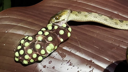 After dinner we even got to go out to their garden for a night tour where we saw several red eye tree frogs among others, as well as a snake who was feasting on frog eggs near the pond. Billy and Priscilla knew just where to find all the night critters and provided interesting educational info about the frogs.