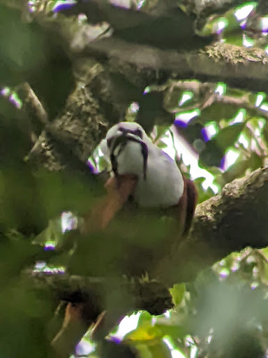 I saw a few bellbirds, look at the highest branches in the bellbird area (there's a sign). They like to fly back and forth between the same branches so if you see one flying away just wait a few minutes and it'll likely come back! I heard many keel-billed toucans, but they were farther away. I also saw many butterflies, lizards, smaller brown or yellow birds, turkeys with bright red neck flaps (wattle?), colibris, bright yellow stick bugs, and more!