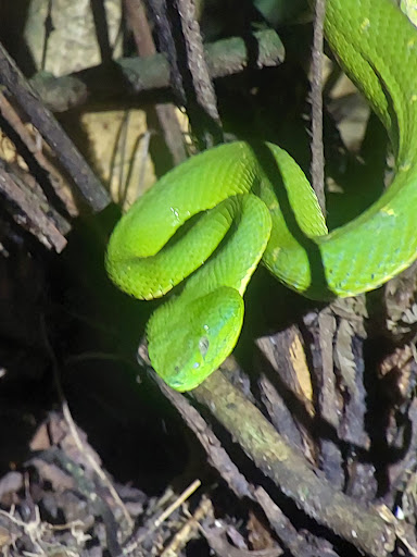 More practical info: bring a raincoat, it rained a little while we were walking. I ended up using my phone's flashlight as backup, as the tiny flashlights from the guide were too weak for my eyes. But my husband had no trouble with his. And the guide had a really powerful one that lit up anything we needed. He also had a scope that allowed us to take close up pictures of the animals in the trees. Sneakers rather than sandals are a good idea, in my opinion. We didn't see any snakes, but they're a...