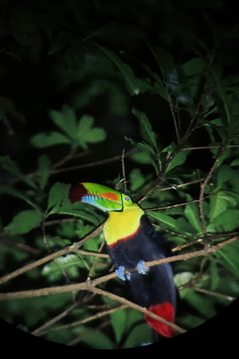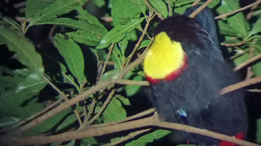 El Tesoro opened just a couple of months ago, so everything is nice and new here, and well organized. It's outside of Monteverde, and not overrun by tourists. For us, this meant the chance to call just 2 hours ahead and still find a night tour available, with a guide who showed us all the local fauna, and flora, too. One of the nicer things the guide mentioned was that they do not bring in animals, displacing them just to please the tourists. So we didn't see any sloths, but we did see many gorgeous birds (they look like balls of feathers when they're asleep!), including the regular tucán and the emerald one (so hard to spot at night!), an orange collared trogon, a rare sunbittern, and others I can't remember the names of. We glimpsed a huge tarantula in her nest, shying away from our flashlights. Tiny frogs and big grasshoppers, stick insects, both with and without wings... Many other insects whose names escape me. And we ran after an olingo which darted so fast on the higher branches! Being in the tropical forest at night was magical. A great experience, totally recommended!