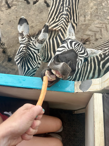 Safari: Our guide on the safari tour, Emmanuel, was awesome! He was very knowledgeable and friendly and gave us plenty of time to interact with the animals at all the different stops. The zebras and giraffes were so cute eating the carrots. One of the giraffes would stick his head and neck right over my husband to try to get closer to the carrots we had in the middle of our seat. The ostrich was very quick snagging his share of carrots. Be careful when feeding this one! I had the carrot in the palm of my hand and he still kind of missed and snagged the side of my hand a little on the last bite.