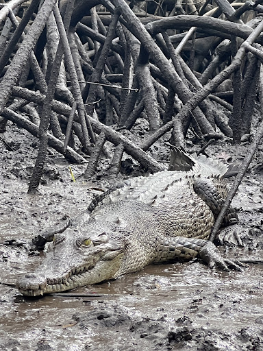 We started the estuary tour with a short hike where we saw lots of birds, crocodiles(!), bats, crabs, plants, and an amazing/shocking amount of termites/termite nests.