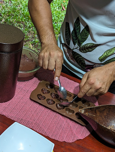 Read moreA conservation based cacao cooperative of sorts. Cacao is sourced from regional farmers who are paid a fair price for their partially processed cacao. Adolfo aka "Fofo", his wife and daughter then process the cacao closer to traditional processes for sale to the public and in addition hold free conservation based courses once a month fo local farmers covering topics such as global climate change and the like. They put on entertaiing and interactive day or night chocolate history and making lessons with lots of chances to taste. My favorite was the grinded cacao mixed with 10% sugar and a touch of cinnamon. My hot chocolate preference was with vanilla, black and cayenne pepper and nutmeg. Cocoa butter runs $7USD for a small portion(free samplings), yet the chocolate nibs and powder in larger bags at $5USD were reasonable as were the bars at $3USD. This is a familial operation, lighthearted and...