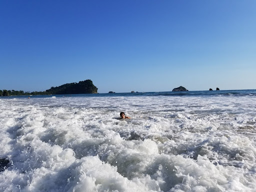 Tips: if you want less people, go towards the north end of the beach. There are less rocks there too - since the South end of the beach is where big rocks come close to the shore, there are more rocks in the water on the sand too. If you take local bus to the beach (xxx colnes) you can ask for the one before last stop, so you don't need to hike back north from the last stop. There is plenty of shade under mangroves and tall trees along the beach (on the weekends many of those places are quickly spoken for by the locals, so arrive early to have a choice of the spot) There are no washrooms at the beach - you would need to pay at the restaurant to use theirs (500 colones), and not all of them allow you in unless you order. Bring your snacks (cooler with a cold watermelon - mmm) but beware of monkeys - they tried to steal bananas from our backpack (they smell bananas for miles, and would actually open your bags to take them out) - luckily the fellow beach goers scared them away and saved our bag. We made new friends that way :) Beware of the strong undertow in the water - try to go no further than waist deep, especially if you're not a super strong swimmer. We talked to quite a few people who were pulled away from the shore and had to be rescued by the guards. The guards seem to be vigilant but would prefer not to need their help (our 14 year old was pulled by the currant, and my husband luckily was next to him and brought him back, but that was a scare. At least he did not need any more persuasion to stay close to the shore afterwards). Rent boogie boards - with those kind of waves we all had an absolute blast with the boards - I could not pull my family out of the water for the entire day Mind the sun - it is not even Mexico or Cuba - the sun is super strong here. We've seem more than one person with the raw wounded noses - the result of a bad sunburn. We all used swim shirts, and I was glad mine had long sleeves too. Plus hats and zinc based sunscreen - you need to get used to applying it but I find it stays much longer and protects better than the regular chemical ones (not to mention their harm...