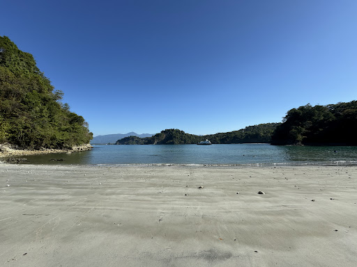 A beautiful small beach with very light grey fine sand, contained by rocky outcrops either side and a rather steep muddy/slippery climb down from the road. Just getting transport here is up & down ridiculous gradients and curves, and would be terrifying in the wet. Only a couple of drink/snack vendors on the beach, with limited options (and we had to wait until midday for the grill to fire up for some bbq chicken and salad). The ceviche was pretty good. But take food and drink with you. The sea is awesome; the bay is quite protected but you still get 5-6ft waves from the Pacific. There are some hidden stony sections just inside the water which are a bit uncomfortable/dangerous at certain tides. Some beach chairs and umbrellas ($10-15) but also some shelter in the tree line. Speaking of which, it was pretty cool when a family of capuchin monkeys came to visit at midday and a lot of people got photos from maybe 6-10 feet away. Back at the main road, I also watched 3 howler monkeys using the power lines and rope lines to cross the road above our heads. Arrange a pick-up if you are not already part of a tour group, because we waited/walked for half an hour before we managed to get a taxi back to Quepos (all the others we saw were pre-booked). If you are physically able (for the short but steep/slippery climb) this is a lovely beach. I don't think there's any other access (other...