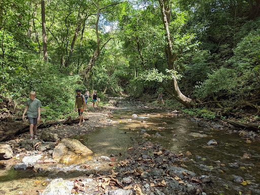 The first loop trail they say takes 45 min. There is a decent amount of uphill walking to do, but the path itself is not difficult. We meandered and then wadded in the river which is quite low in dry season. We saw lots of birds and tadpoles and butterflies and of course iguanas.