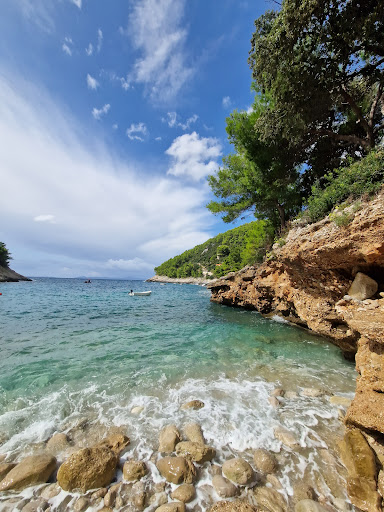 A beautiful natural pebble beach with a view towards the island of Lastovo. The sea is crystal clear and beautiful blue. On the right side, there are large rocks that look unreal, but on the other half, small pebbles. Those pebbles were shaped by the sea. Easy entrance to the sea. The beach looks like a fairy tale. There are even a few houses in the bay, and above the beach itself is a small cafe-restaurant that offers sunbeds. Everything is great, only the way to the beach is very difficult for me. Although there is an asphalt road to the parking lot near the beach, it is very steep, narrow, approx. 3 km long, and it is very difficult when a vehicle is coming from the other direction. Fortunately, we didn't find ourselves in that situation because I don't know what it would look like. The climb back towards the main road is very complicated because there are 4-5 very sharp turns. The stress of driving paid off when we walked from the parking lot to the beach for another 5 minutes and...