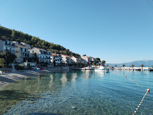 Gornja Vala Beach in Drvenik is one of the longest stretches on the Makarska Riviera, known for its clean pebble shore, clear water, and natural shade from pine and olive trees. It's a family-friendly spot with a gentle slope into the sea, making it safe for children. Facilities include showers, changing cabins, public toilets, and a ramp for wheelchair users. Nearby, you'll find cafés, restaurants, and kiosks for refreshments. For those seeking activity, options like jet skiing, kayaking, and a small water park are available. The beach can get busy in peak season, but its length usually allows space for everyone. It's a reliable choice for a relaxed...