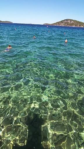 Nice beach but very stone with lots of sea urchins (don't stand on them or touch them as they will sting you with it's spines if it does happen make sure to take out the spines asap you can buy cream from local drug stores or apoteka) if you go further up the beach you have some ladders which you are able to climb down into the sea with little to know...