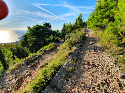 You can get to start of this path from nearby bus stop if using public transport for no.3 bus.Otherwise off busy carriageway.There is signage for start of path near trees and vegetation.The path itself is very rough with small boulders,stones and loose gravel;it is a defined path for majority of path however at the start of path by main road can be a bit confusing thus best to use mapping app such as Google maps.I would strongly recommend sturdy hiking boots for this path;as my 4 yr old all terrain goretex trainers came apart at the front on the right trainer on the way up due to the severity of this path;gradient is typically not steep due to zigzag route up;views up and down are breathtaking and arguably better than from the cable car even though the path is very rough;I have walked up mountain paths in the UK and would rate this difficult overall unless you have sturdy footwear.You have to fully concentrate to avoid any mishaps or potential accidents all along the path especially at the start from the busy road and near the top of path.The views however as previously mentioned are amazing on a clear sunny day.Also take plenty of liquids;I would recommend a minimum of 2 ltrs but ideally 3 ltrs on a sunny hot day if going up and down and not buying a drink from the shop or restaurant...