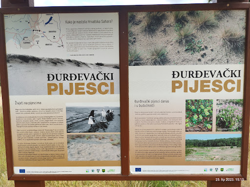 Read moreJako lijepa ideja od strane turističke zajednice Đurđevac,ali nažalost vrijeme čini svoje. Osim staze pijeska drugo jedva vidljivo od žbunja i šikare šta je zaraslo. Puno informacija o različitom cvijeću,kukcima ali do nekih se ne može ni doći od žbunja.Tko je u prolazu i želi osjetiti pravi panonski pijesak ,topla preporuka neka stane...