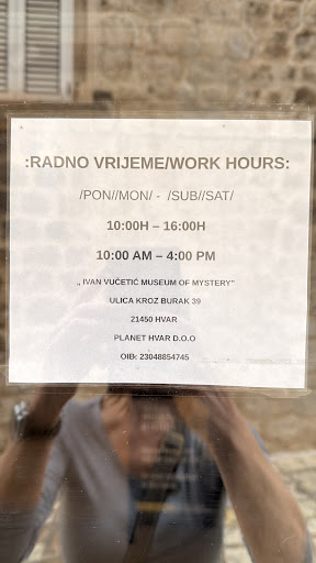 Aspectos negativos (sólo por si mis comentarios les pueden servir para mejorar): -En su página web oficial pone que el horario de apertura es todos los días de 10.00 a 22.00, y en Google, todos los días de 09:00 a 17:00. -Como tenía interés en visitar el museo, les envié un e-mail unos días antes de ir a Hvar preguntándoles por su horario de apertura (para aclarar lo anteriormente expuesto), y nunca me respondieron. -Algunos de los carteles informativos están borrosos o les falta texto o letras, lo cual me llama la atención teniendo en cuenta lo nuevo que es el museo. -En uno de los carteles hay un error grave en su traducción al español, diciendo que Ivan Vucetić compró el armario que después transformó en "almacén" de registros de huellas dactilares en 1981, en lugar de en 1891. Este fallo me parece grave, y ni siquiera se puede justificar como error de traducción, ya que es un fallo puramente numérico (aunque todos somos humanos, claro, pero si por algo se cometió este fallo, deberían corregirlo). -Por último, "la tienda" (todo el museo en sí es una pequeña habitación, me refiero a la parte donde venden artículos ;)) fue la única parte del museo que no me gustó. Tienen poca variedad de artículos, y los que tienen no me llamaron la atención, además de parecerme caros y sin una buena relación calidad-precio. Creo que esa parte podría tener mucho más potencial, vendiendo artículos más atractivos y de diferente variedad de precios (yo misma hubiera comprado algún pequeño souvenir, si hubiera visto algo bonito, económico, y preferentemente práctico). Creo que es importante una mejora en la tienda, ya que el museo es gratuito, con lo cual en teoría se sostiene sólo con las ventas y con donaciones (aunque supongo que recibirán alguna subvención del Gobierno).