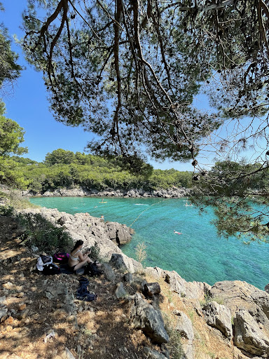 Read moreIt is a wonderful place, nice view on the hotel and on the sea. There is a small wood so people can be in a shadow where is more calm or they can be in the sun. Sea is clear, in shalow area is sand. There is a few beach bars with foods and drinks and ice cream, and one restaurant. Also, it is possible to rent kayaks, pedaline, paddleboat, and for kids there is a big aquapark. Near is a zip line and an open gym. After the woods is beach for dogs. it is possible to go from beach to 5 star Camping Valamar through woods by foot. I...