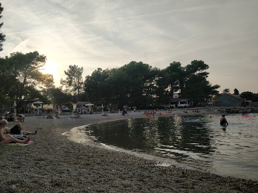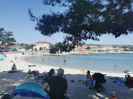 Piccola spiaggia cittadina, raggiungibile facilmente a piedi dal centro città. Molto rinomata e comunque spesso citata tra nelle statistiche che presentano le spiagge da non perdere dell'isola. Non la penso così. Si tratta di una spiaggia di sassi (che prosegue su gradoni di cemento nella parte più esterna) in parte attrezzata e servita, in parte spiaggia libera. A margine della battigia ci sono diversi chioschi per bere/mangiare, dallo street food (es fish and chips), al più classico chiosco con gelati, e alcuni giochi per bambini. Poco lontano numerose bancarelle ed anche un piccolo mercato. Naturalisticamente parlando sarebbe anche una bella baietta, peccato che ad agosto sia strapiena e che quindi oltre alla generale caciara, l'acqua sia torbida (senza alcuna possibilità di vedersi neppure i piedi pur indossando la maschera/gli occhialini) e fare il bagno diventi una lotta territoriale per il proprio metro quadrato. Sicuramente in altri mesi dell'anno la spiaggia è maggiormente godibile anche da chi, come me, non ama le spiagge affollate! Nell'isola di Krk ci sono decisamente spiagge più belle e piacevoli da frequentare anche ad agosto, se non amate il caos non fatevi trarre in inganno dalle statistiche e cercate le spiaggia...