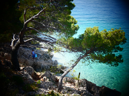 Beautiful mint water. The path to the beach is lovely although you need to be careful how you walk. The shore is just rocky and steep so you need to make sure you have appropriate shoes. It is a bit hard to get in the water but it is worth it. It is such a wonderful feeling to step on the peebles and see how clear the water is. The view is spectacular too. Too bad they didn’t make the shore more accessible, I mean the entrance...