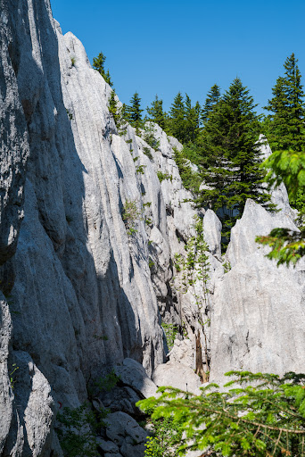 Vihoraški put is a hiking trail which directly connects Samarske and Bijele stijene. It is considered to be the most attractive trail in Croatia as it goes through the heart of strict nature reserve - over rocky ridges, hidden valleys, narrow gorges, between rock faces, etc. It ascents, descends and turns countless times through a complex, rocky terrain and overgrown forest. Ljuska (Engl. "Shell") is the central point of this trail, a part in which the path goes through narrow gaps in rocks, demanding surefootedness, experience and some climbing technique. In total the trail is ~3 kilometers long, named after Mountaineering Club "Vihor" (Engl. "Whirlwind") whose members found it...