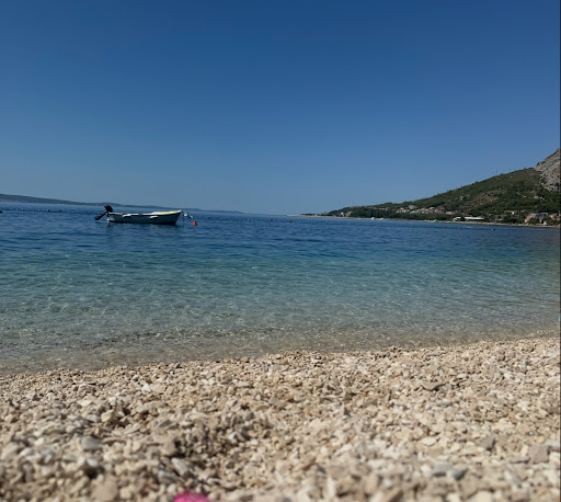 Шикарний пляж. Гарні краєвиди, кристально чиста водичка, є роздягальні, безкоштовний душ, бар і ресторан. Туалети ми не знайшли. Багато місця, є дерева та багато місць в тіні, тиха та спокійна атмосфера, навідміну від пісочного пляжу в Омішу. У другій половині серпня 2025 року пляж не переповнений, було достатньо місця та простору. Вода в Омішу прохолодна та освіжаюча, довго в воді не посидиш, оскільки холодна річка Цетіна впадає в море. Є платні шезлонги, аренда сапів,...
