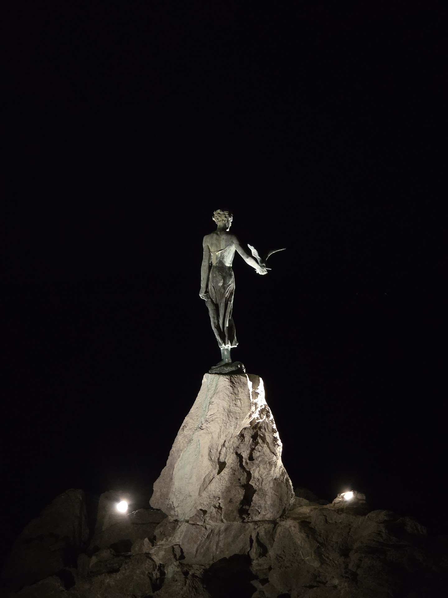 As the place where the “Madonnina” once stood was left empty, it was decided to put another statue in its place. The “Maiden with the Seagull” was put up in 1956. The beautiful view of the sea extends in front of the statue. The scenery is especially impressive by night, when the Maiden is lighted with special reflectors or during the stormy weather when waves splash and water scatters over the reef giving the appearance of a nymph rising from the spray. That is the reason why one of the nicknames locals gave to the Maiden is the “Nymph”.